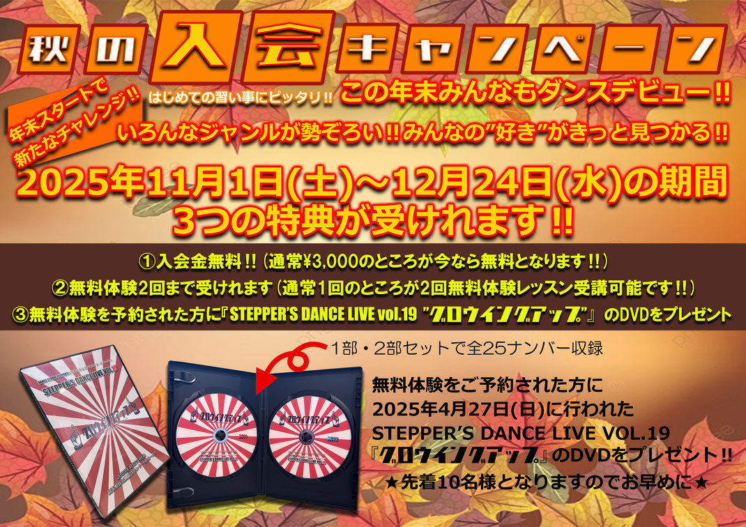 そして、なんと!無料体験レッスンが2回受講できます!是非この機会にSTEPPER'Sでダンスを始めてみよう!